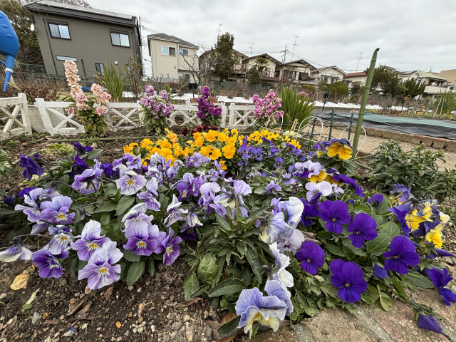 西武庫公園の分区園では、早春に咲く様々な花が寒さに負けず咲いています。 西武庫公園分区園は、市民の方が育てている「貸し花壇」です。 公園の北西にあり、園内には誰でも自由に入ってご覧いただくことができます。 お散歩がてら、是非お越しください。