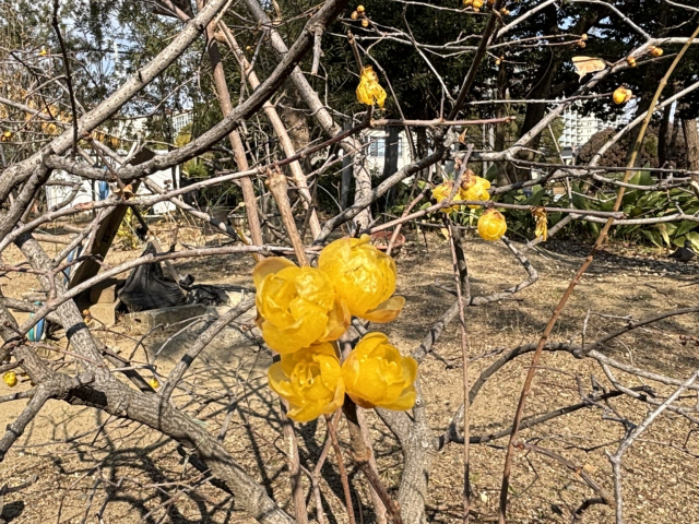 上坂部西公園でソシンロウバイが咲いています。