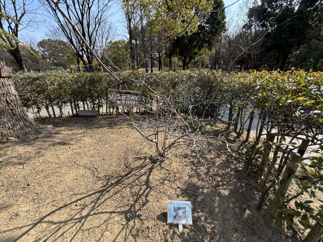 是非、昆陽川に架かる橋のたもとに植えられている「ロウバイ」と見比べてみてください。