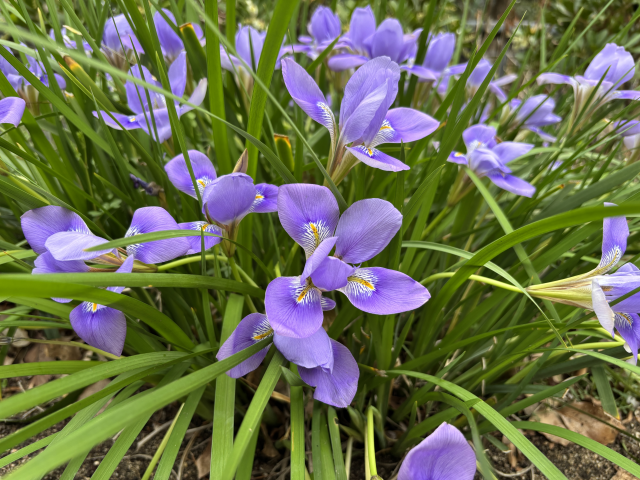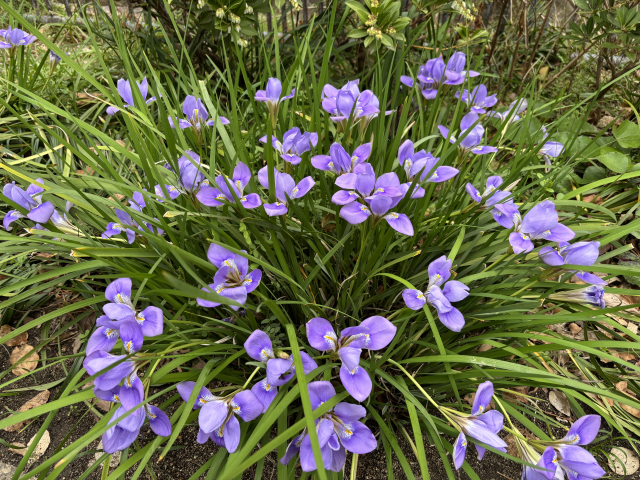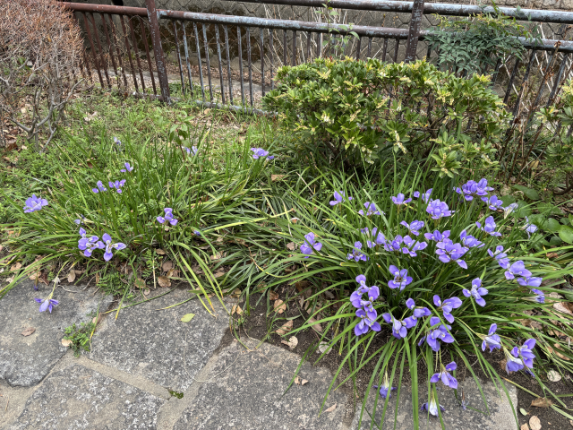 上坂部西公園でカンザキアヤメが咲いています。 カンザキアヤメ(寒咲菖蒲)はアヤメ科アヤメ属の多年草。 開花期は1月から3月で、葉の間から花茎を伸ばして、薄い紫から青色の花を咲かせます。 アヤメが60センチメートルになるのに対して15から20センチメートルとかなり小型です。 上坂部川の西側でご覧いただけます。
