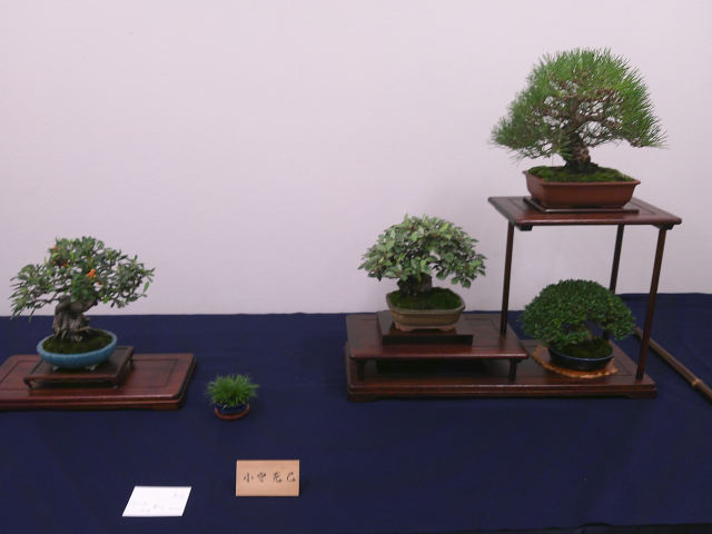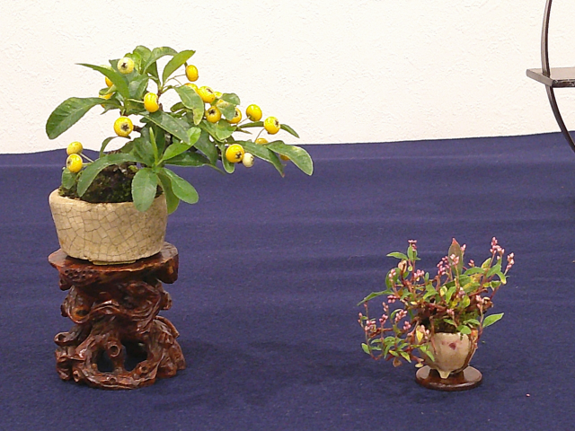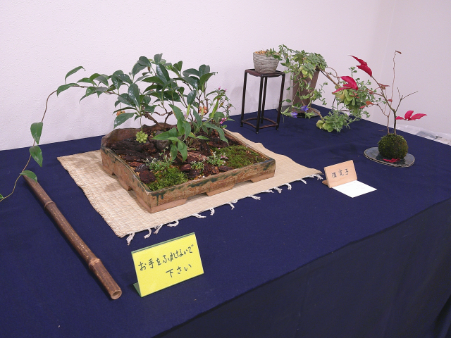 尼崎小品盆栽山草会が育てた盆栽や山草の展示