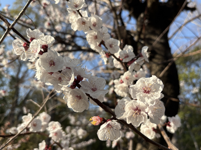 上坂部西公園でアンズが満開です。 アンズ(杏/杏子)は、バラ科サクラ属の落葉小高木。英名はアプリコット。 春(3から4月頃)に桜よりもやや早く、葉に先立って淡紅色の花を咲かせます。 花は一重咲きのほか、八重咲きの品種もあります。 6から7月にはウメによく似た橙黄色の果実がなり、果実はジャムや乾果物として食用にされます。