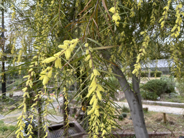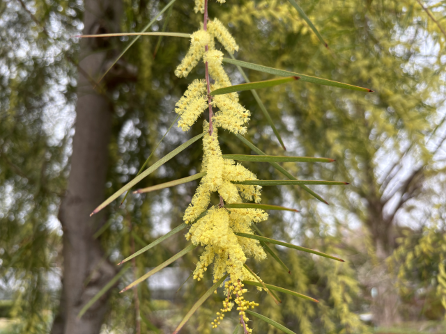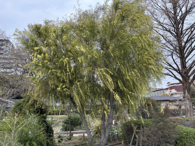上坂部西公園でアカシア フロリバンダが咲いています アカシア フロリバンダはオーストラリア原産で、マメ科アカシア属の落葉高木。 アカシア属には多くの品種が属しますが、日本でよくみられるものは銀葉アカシアやフサアカシアです。 フロリバンダは、細葉のアカシアで樹形が整いやすい品種です。笹のような葉が涼しげで、枝はしだれています。 緑の相談所北側のメイン園路沿いでご覧いただけます。