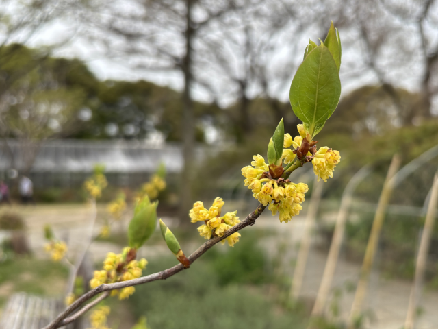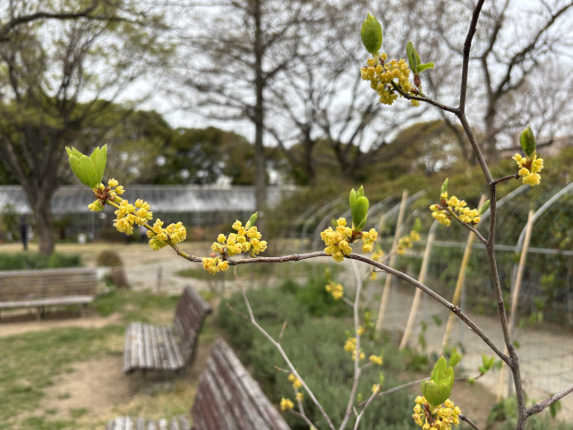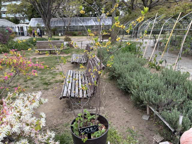 上坂部西公園でシロモジが咲いています。 シロモジ(白文字)は、クスノキ科クロモジ属の落葉低木。葉の先はふつう3中裂しており、切れ込みの底は丸く広がります。春には黄色い小さな花を集まって咲かせます。 「シロモジ」の名は、同属別種のクロモジに比べて枝や幹が白っぽいことに由来します。 緑の相談所前の広場に展示しています。