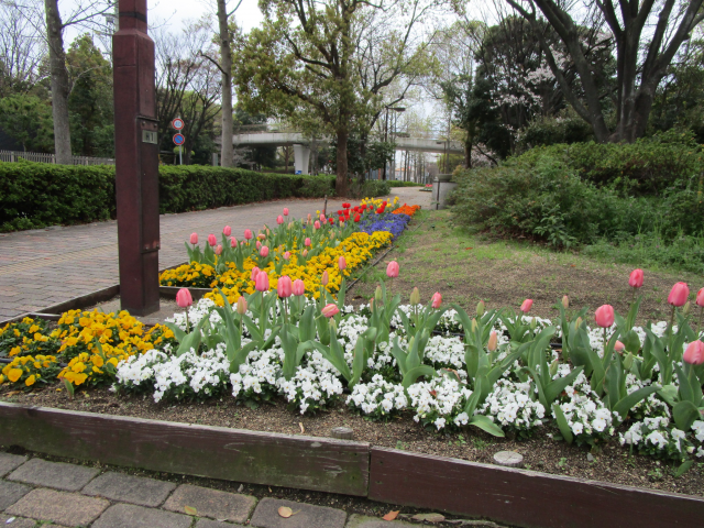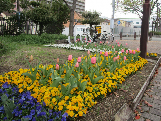 元浜緑地でチューリップ約600球が見頃です。 この花壇は、「花のまちあまがさきチューリップ運動」の一環で植栽しているものです。 是非ご覧ください。