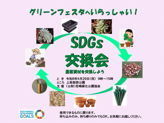 4月29日の「あまがさきグリーンフェスタ2025」において、園芸資材の交換会を行います。