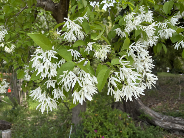 「ヒトツバタゴ」の名前の由来は、タゴとはトネリコのことで、タゴは普通は複葉ですが、葉が単葉なので「一つ葉」の名前が付けられたことにちなみます。