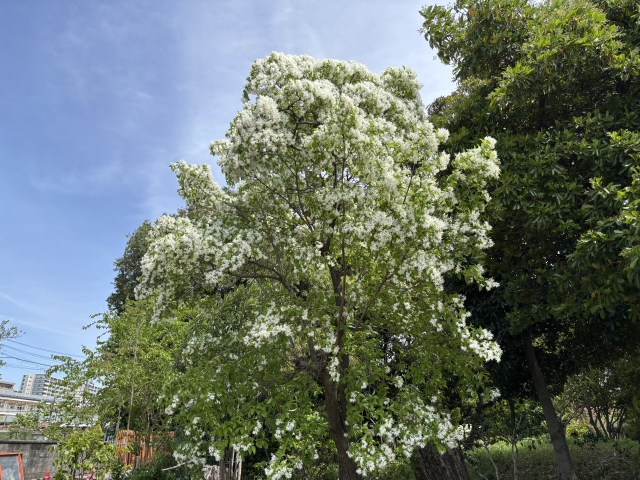 上坂部西公園には、ヒトツバタゴと、北アメリカ東部原産のアメリカヒトツバタゴがあります。