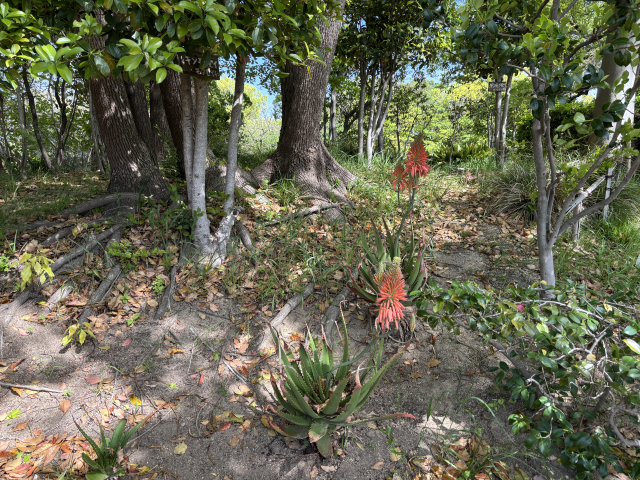 上坂部西公園でキダチアロエが咲き始めました。 キダチアロエ(木立ちアロエ)は、ススキノキ科アロエ属の多肉植物です。 春先に赤やオレンジなどの暖色系の花を咲かせ、民間薬草としても利用されます。 アロエ属は約500種以上も存在し、南アフリカ原産で寒さに弱い品種が多いですが、キダチアロエは寒さにも比較的強い品種です。 上坂部西公園の北側入口付近などに植えられています。