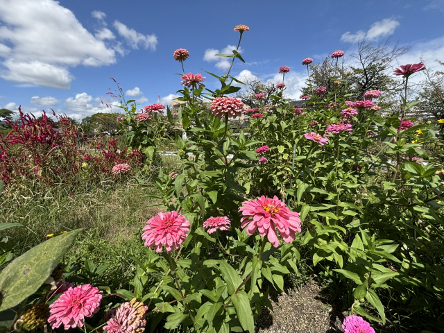 西武庫公園の分区園では、初秋に咲く花が咲いています。 西武庫公園分区園は、市民の方が育てている「貸し花壇」です。 公園の北西にあり、園内には誰でも自由に入ってご覧いただくことができます。 お散歩がてら、秋の訪れを感じに是非お越しください。