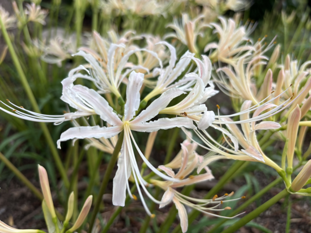上坂部西公園でヒガンバナが咲いています 毎年お彼岸の頃になると、きちんと咲いてくれるヒガンバナ。 今年も猛暑の影響か、例年より遅れていましたが、ようやく紅白で咲きだしました。 里山のあぜ道や畑の周りで見かける、ちょっと郷愁を誘うお花。 街なかの公園で、どこか懐かしい気分になるヒガンバナをぜひ、ご覧下さい。 上坂部西公園 緑の相談所前や南側の噴水近くで咲いています。