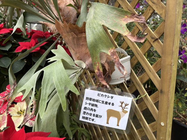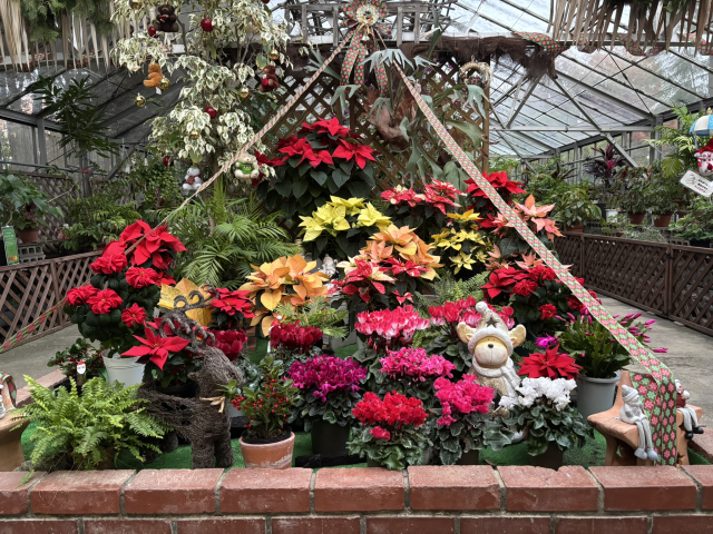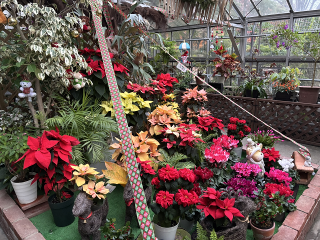 シクラメンやポインセチアなど、冬を彩る鉢花を展示します。
