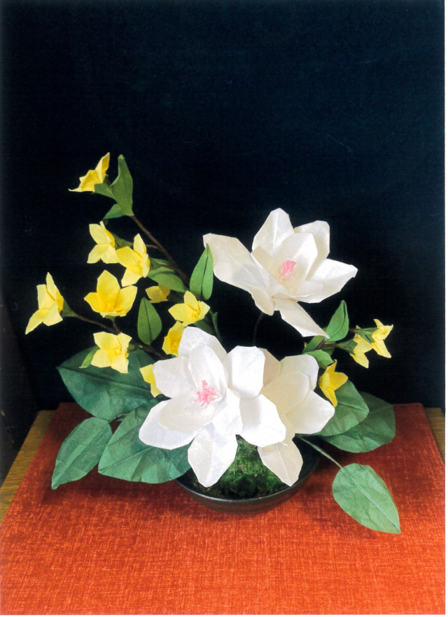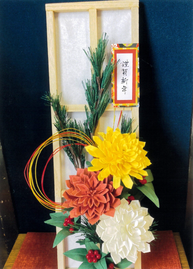 和紙を使って季節の花を折り、リースやスワッグ等の作品を展示します。