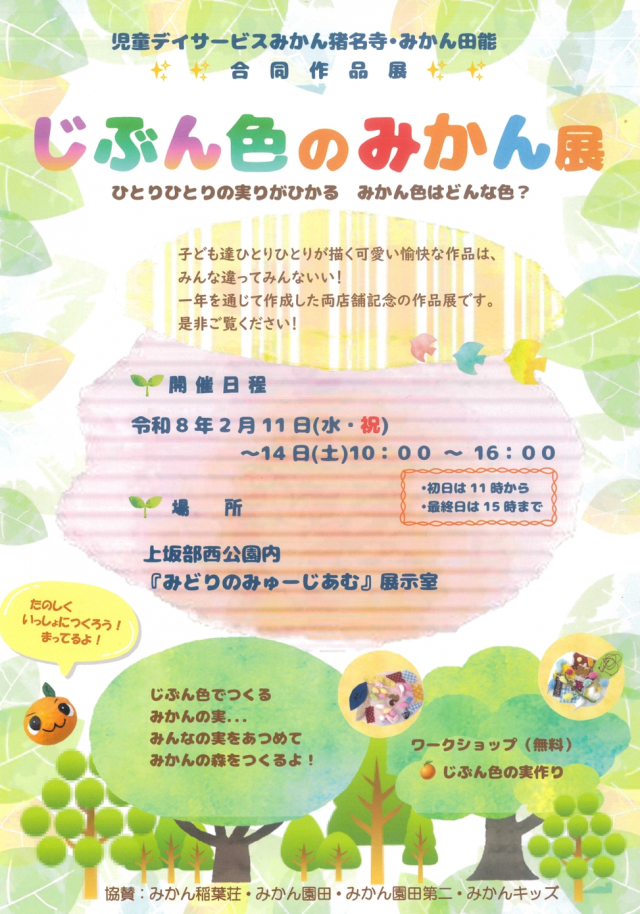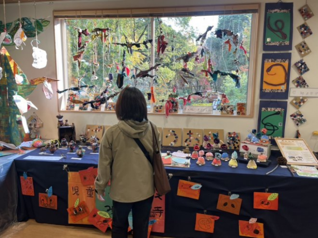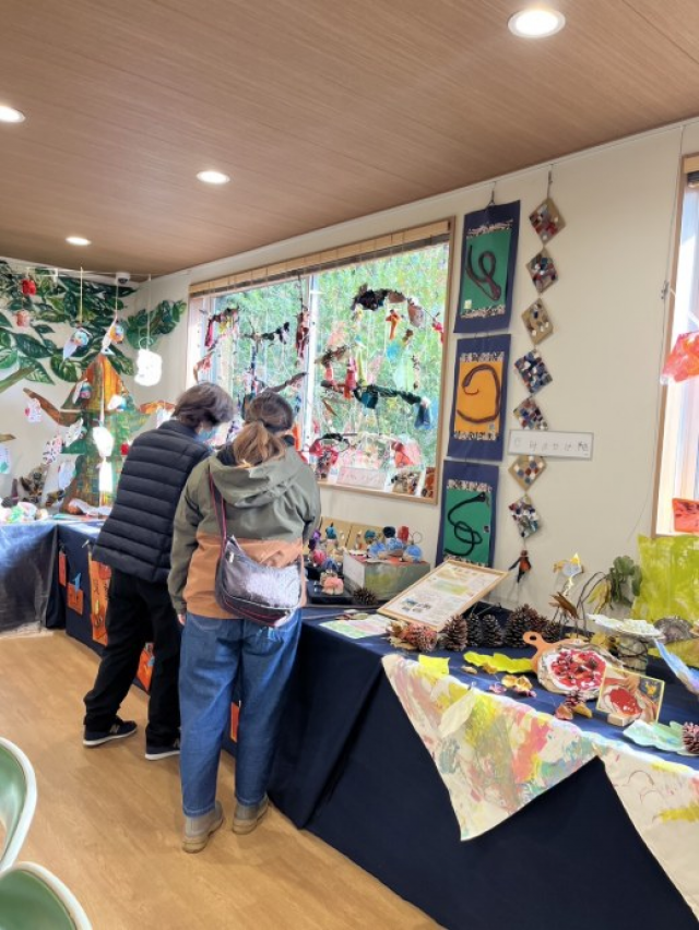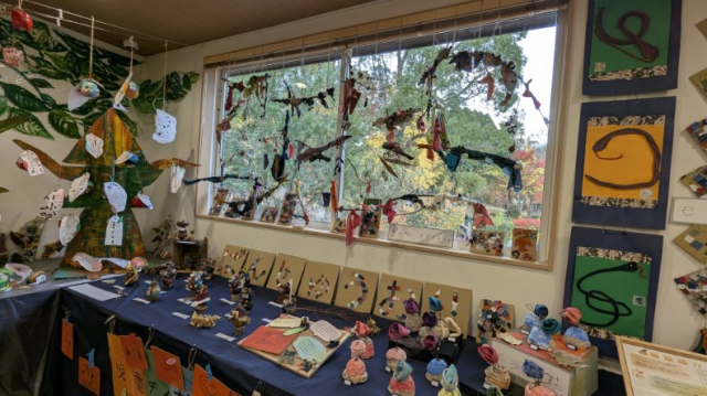 子どもたちが一年にわたって制作してきた“緑”や“木々”にかかわる数々の作品の展示します。 出展:児童デイサービスみかん 猪名寺・田能