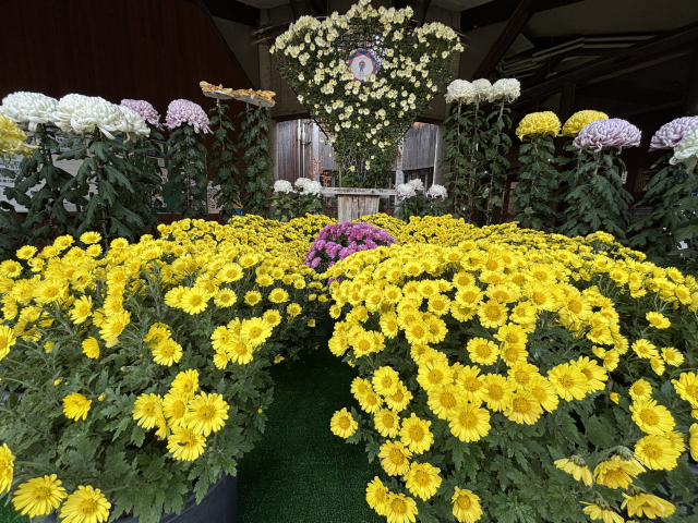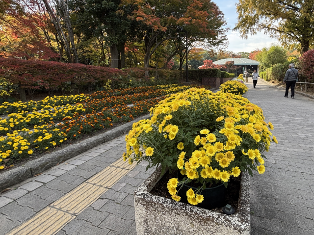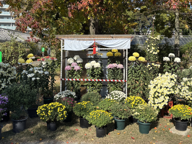上坂部西公園でキクと紅葉がお楽しみいただけます。 菊花展は終わってしまいましたが、まだまだ見頃の菊花を尼崎市菊花協会のご協力のもと、上坂部西公園緑の相談所前で展示しています。 園内の紅葉との見事なコラボ。秋ならではの光景をご覧に、是非お越しください。