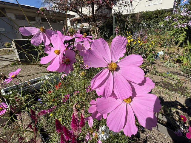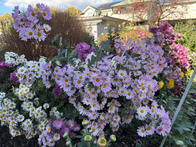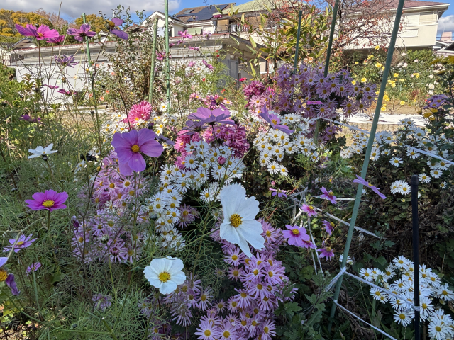 西武庫公園の分区園では、秋に咲く花がまだまだ元気に咲いています。 西武庫公園分区園は、市民の方が育てている「貸し花壇」です。 公園の北西にあり、園内には誰でも自由に入ってご覧いただくことができます。 お散歩がてら、是非お越しください。